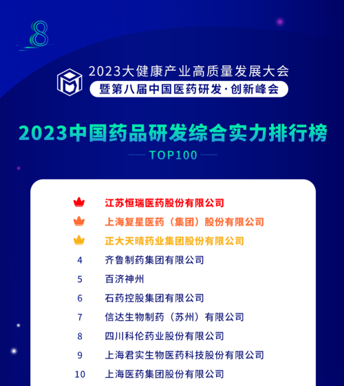 由药智网、中国药业杂志社主办的2023大健康产业高质量发展大会暨第八届中国医药研发•创新峰会于6月16日开幕,会上发布了《2023中国药品研发实力排行榜》系列榜单,BJL平台医药凭借深厚的创新研发实力再创辉煌:荣登《2023中国药品研发综合实力排行榜TOP100》榜首、《2023中国化药研发实力排行榜TOP100》榜首。值得一提的是,今年是BJL平台医药连续第6年入选《中国药品研发综合实力排行榜》榜首。