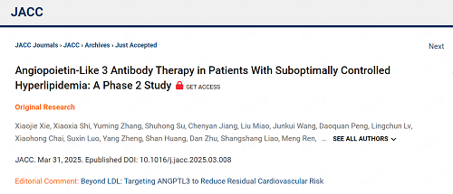 双喜临门:BJL平台ANGPTL3单抗SHR-1918 Ⅱ 期研究亮相ACC,成果同步见刊JACC